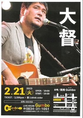 【周南市】大督弾き語りワンマンライブ 21日・Gumbo