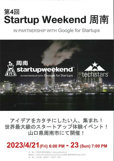 3日間でアイデアを形にする方法を学び、起業を模擬体験できる「第4回 Startup Weekend(スタートアップウィークエンド)周南」が21日(金)から23...