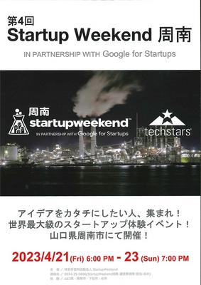 3日間でアイデアを形にする方法を学び、起業を模擬体験できる「第4回 Startup Weekend(スタートアップウィークエンド)周南」が21日(金)から23...