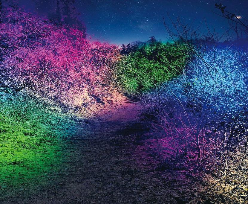 12カ所のステージは「ファンタジアゲート」に始まり、「黄金の梨との遭遇」「夜の虹」「星々の祈り」などと名付けられ、最後は「明日への旅立ち」。夜の森の静けさや星空と調和するデザインにしている。
