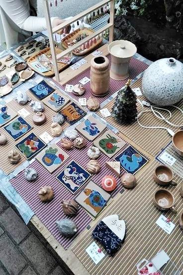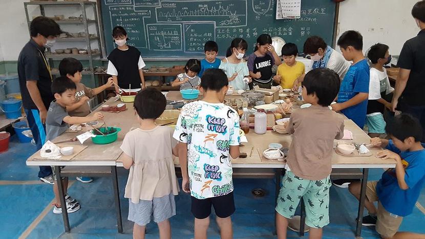 鹿野焼は素朴な焼き色に適度な不純物が入ることが魅力。陶芸教室をますます楽しく、にぎやかにしたい、との思いが込められている。