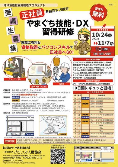 山口県周南市の(一社)ブロンズ人財協会(岡田秀星代表)が24日(火)から11月7日(火)まで就職に有利な資格取得とパソコンスキルを身につける「山口技能・DX習...