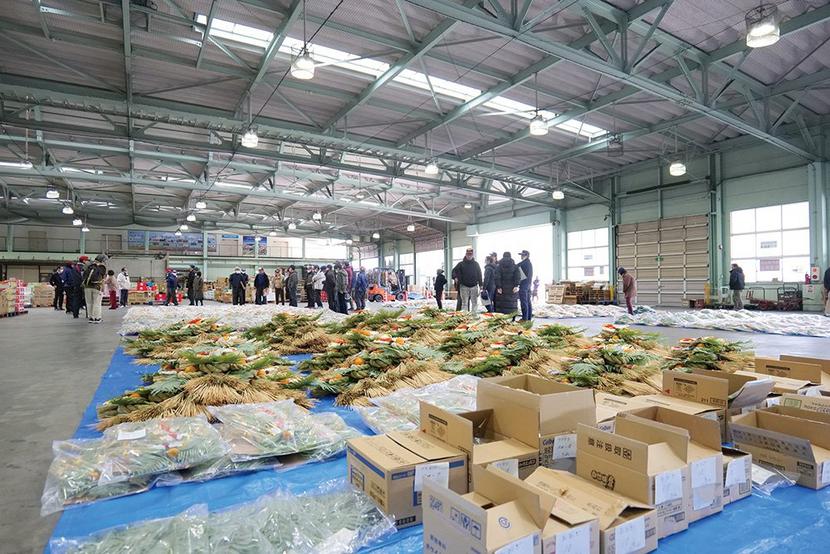 周南市鼓海にある市地方卸売市場の青果市場で25日、正月用飾りの競り「正月用お飾り市」が開かれた。主催は徳山青果㈱。 出荷者と小売店や仲卸業者などの買い手、約...