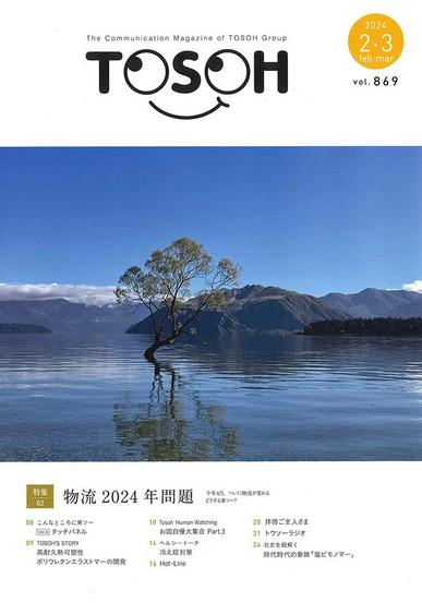 特集は「物流2024年問題」。4月から始まる運送業界の時間外労働の上限規制について、同社とグループ会社が講じている対策を説明している。タンクローリーに製品を早...