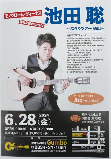 デビュー曲「モノクロームビーナス」が50万枚の大ヒットを記録した池田聡さんのワンマンライブ「ぶらりツアー徳山」が6月28日(金)午後7時から、山口県周南市栄町...
