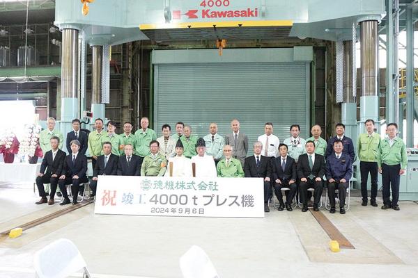 周南市港町の徳機㈱(岡田哲矢社長)が川崎油工(㈱)の4,000トン成形機を導入した。6日に関係者と鏡板事業部所属の社員ら80人が集まって完工式を開いた。 5...