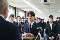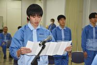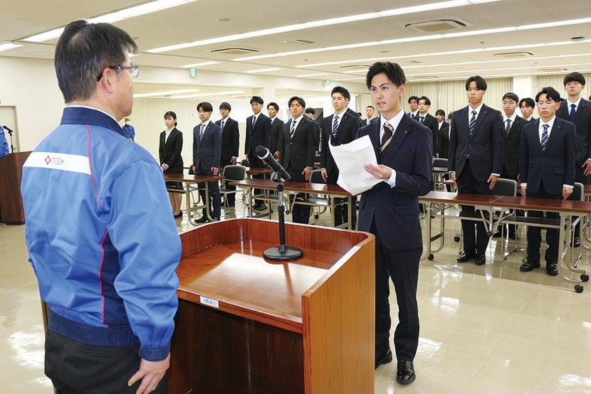 辞令を受けた新入社員を代表して南陽工高出身の田中和夫さんが「入社にあたり身の引き締まる思い。東ソーの社員として新たな一歩を踏み出せたことを大変光栄に思う。これまで支えてくれた人たちに感謝しながら社会に貢献することで恩返しをしたい」と決意を表明した。