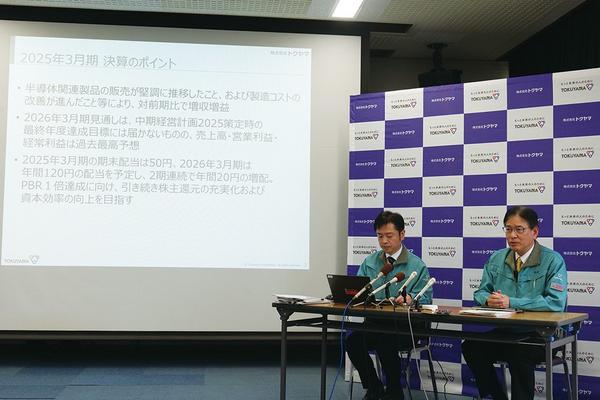 周南市御影町の総合化学メーカー、㈱トクヤマ(横田浩社長)は4月29日、グループ全体の2025年3月期連結決算を発表した。 半導体関連製品の販売が堅調に推移し...