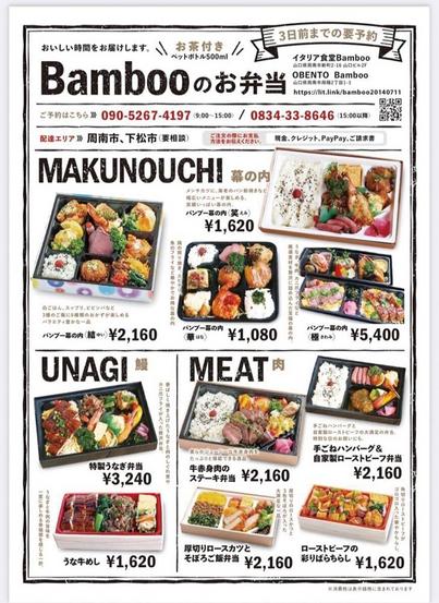 経済周南市周南市新町の「イタリア食堂Bamboo」が、手づくり弁当を宅配している。