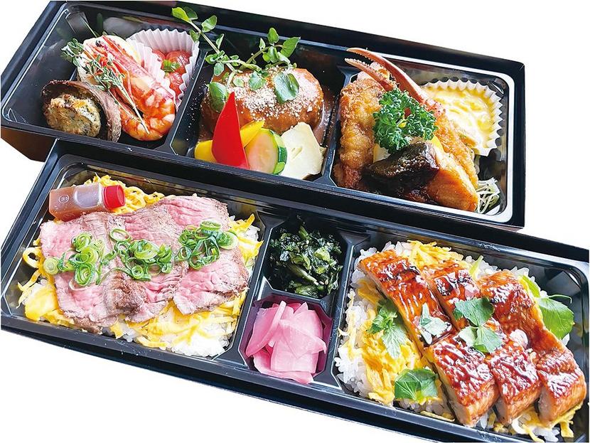特別な日におすすめなのは「特製うなぎ弁当」(3,240円)。香ばしくふっくらとしたウナギが食欲をそそる。肉好きには「牛赤身肉のステーキ弁当」(2,160円)や、「手ごねハンバーグ&自家製ローストビーフ弁当」(2,160円)も用意。