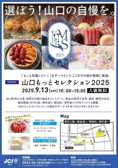 県内企業や飲食店のこだわりの商品に投票する「山口もっとセレクション2025」のPRイベントが13日(土)午前10時から午後3時まで、同市の青空公園と銀座通りで...