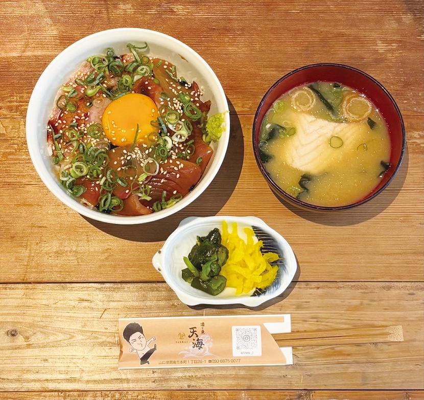 昼営業もあり、「展開自慢の刺身定食」や「天海自慢の海鮮丼」、天ぷら定食、にぎり寿司定食など、朝獲れた魚を昼に味わえる新鮮ぶり。