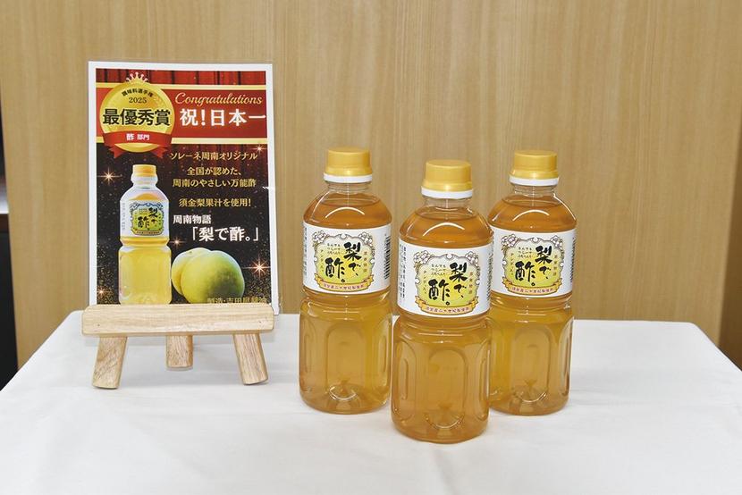周南市戸田の道の駅「ソレーネ周南」が開発製造を遠石の吉田屋醤油㈲(石田健代表取締役)に依頼して5年前に誕生した「周南物語 梨で、酢。」が(一社)日本野菜ソムリ...
