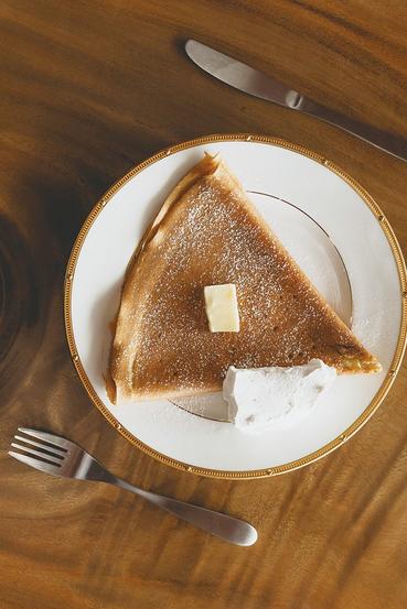 メニューは毎朝焼き上げるアップルパイ(480円)、小麦を味わう塩ロールパン(320円)やクロワッサン(380円)、バスクチーズケーキ、お皿に乗せて提供するバターシュガークレープ、アサイーボウルなどもある。