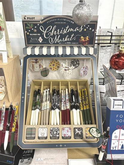 周南市徳山の岐陽中近くの富士事務器㈱本社内にある厳選された文具販売コーナー「Fujimaru」で、クリスマス関連の商品を展開している。 お世話になった人や離...