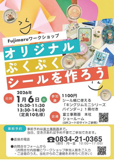 周南市徳山の岐陽中近くの富士事務器㈱本社内にある厳選された文具販売コーナー「Fujimaru」でスタッフとシール交換や、シャチハタネーム印の年内3割引を実施中...