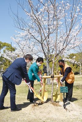 大和ハウス工業の協力で「桜の森」に十月桜と御影石の テーブル・ベンチ