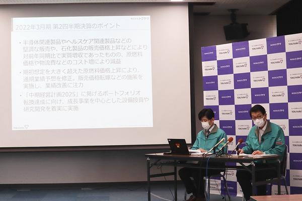 周南市御影町の㈱トクヤマ(横田浩社長)は10月28日、2022年3月期の第2四半期(4〜9月)の連結決算を発表した。グループ全体の売上高は、今期から適用する新...