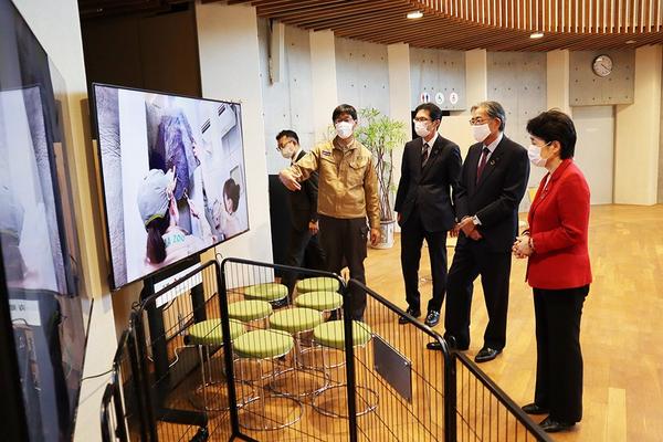 周南市の東ソーは10月29日、子どもたちの学習活動を支援しようと徳山動物園に75インチの大型液晶モニター2台とモニター鑑賞用のスツール20脚、移動動物園用のフ...