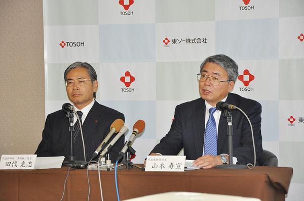 総合化学メーカー、東ソーは6月27日、周南市清水の東ソークラブで山本寿宣社長が田代克志南陽事業所長とともに株主総会にあわせて記者会見し、来春の南陽事業所での地...