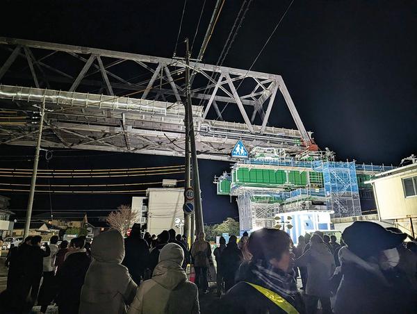 【周南】古川跨線橋、線路上に姿現す 深夜の大移動に観客多数〈動画あり〉