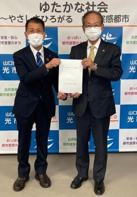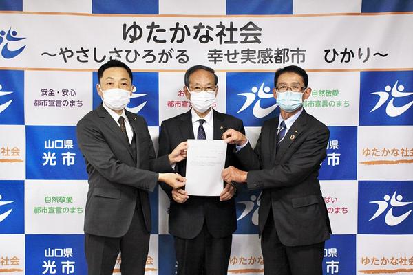 光市議会の会派「共創」(田中陽三代表、2人)は10日、市役所で市川熙市長に2022年度当初予算編成に対する要望書を提出した。 要望書は田中代表と仲山哲男議員...