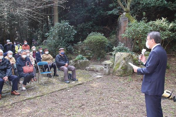 戦前の日本共産党の活動家で、旧憲法下の治安維持法違反で投獄中の1945年3月15日に53歳で死亡した市川正一(1892―1945)の碑前祭が15日、光市光井鮎...