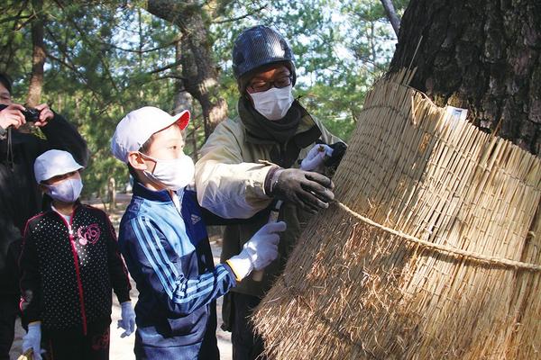 「本当の枯れ葉みたい」 10年ぶり?マツカレハ発見 虹ケ浜、室積で松の“こも”外し
