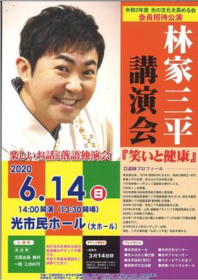 光市文化振興財団の光の文化を高める会会員招待公演の「林家三平講演会〜笑いと健康」(新周南新聞社など後援)が、6月14日(日)午後2時から市民ホール大ホールで開...