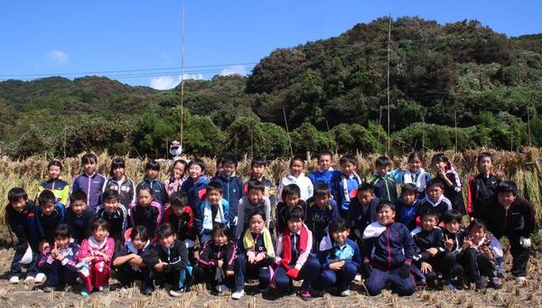 光市の室積小(水品英之校長、246人)の5年生44人が4日、伊保木の約4アールの田んぼで稲刈りを体験した。5年生は6月4日にこの田で田植えをし、9月には稲を鳥...