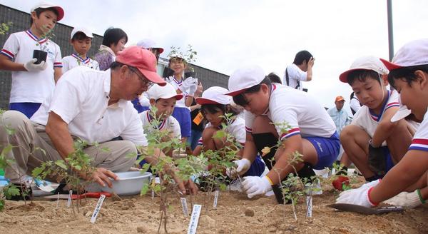 光市虹ケ浜を中心に自生するキク科の多年草、ニジガハマギクをポットに挿し芽をして栽培してきた浅江小(和田明俊校長、760人)の4年生149人が3日、つぼみのつい...