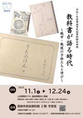 周南市中畷町の市民俗資料館で11月1日から、2025年度企画展「教科書が語る時代〜戦中・戦後の子供たちと学び〜」が開かれる。12月24日まで。 23年8月に...