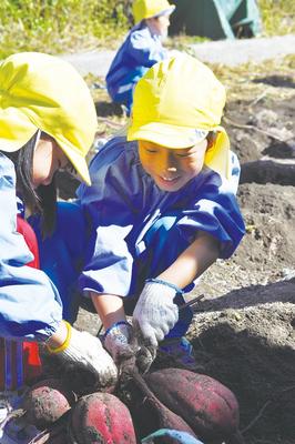 【周南】南陽幼稚園児60人が芋掘り 新南陽若山LCが招く