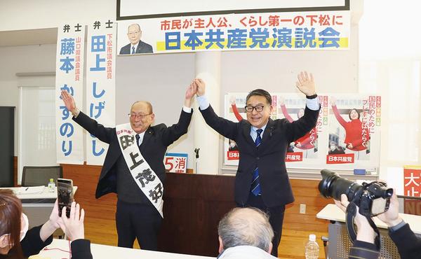 田上氏の議席死守誓う 日本共産党演説会で気勢