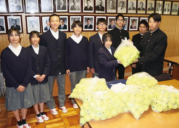 【周南・下松】机や椅子の響きを少なく 下松工高・岐陽中へ穴開きボール1,100個制作