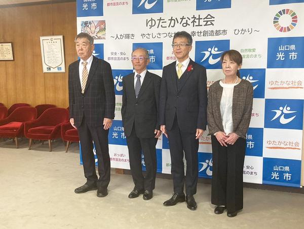 【光】「名に恥じぬよう」「光市の未来へ」 市川前市長ら叙勲の4人が報告