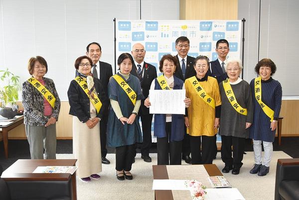 高齢者の交通事故防止に向けた、交通安全山口県対策協議会長の村岡嗣政知事から周南市へのメッセージ伝達式が12日、市役所で開かれ、周南市交通安全母の会(市連合婦人...
