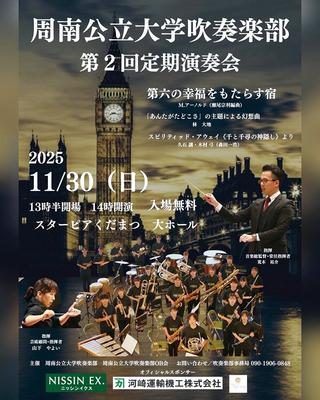 周南市の周南公立大吹奏楽部の第2回定期演奏会が30日(日)午後2時から、下松市のスターピアくだまつ大ホールで開かれる。 同部と同部OB会の主催。 第六の幸...