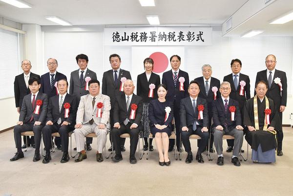 国税の申告と租税教育などに功績が顕著な団体、個人に対する徳山税務署長表彰、感謝状贈呈の表彰式が6日、周南市の同税務署で開かれ、納税者団体の役員を務める3人と新...