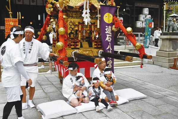 周南市の遠石八幡宮(黒神直大宮司)の秋季例大祭の御神幸祭が26日に開かれた。この祭りは健やかな健康を祈って赤ちゃんにみこしの下をくぐらせる赤子まいりとして知ら...