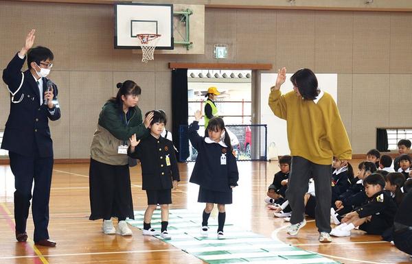 春の全国交通安全運動にちなんだ交通安全教室が14日、下松市の公集小(藤田康伸校長、780人)で開かれ、1年生120人が下松警察署の警察官から横断歩道の渡り方や...