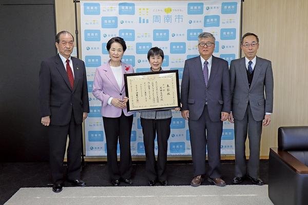 周南市政所4丁目の石田美代子さん(76)が、生活環境の保全に功績があった個人や団体をたたえる循環型社会形成推進功労者の環境大臣表彰を受賞し、11月27日、同市...