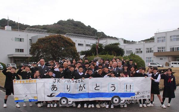 中国ジェイアールバス㈱が山口県光市室積の付属光小(岡田淳子校長、358人)のスクールバスを3月末で廃止するのに伴って1日、同校で「JRバス感謝の会」が開かれた...