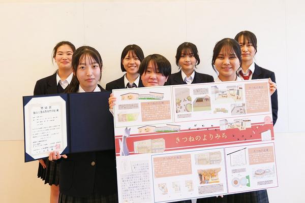 山口県周南市の徳山高専土木建築工学科3年生の秋山さくらさん、金子まりもさん、窪田澪さん、神田陽菜さん、背戸雫さん、中越凛子さん、山田真尋さんの作品「きつねのよ...