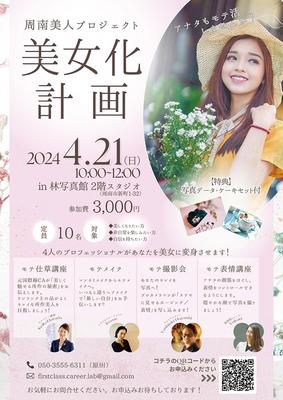 メイクやしぐさなどの専門家による周南美人プロジェクト「美女化計画」が21日(日)午前10時から正午まで、周南市新町の林写真館で開かれる。 ファーストクラスキャ...