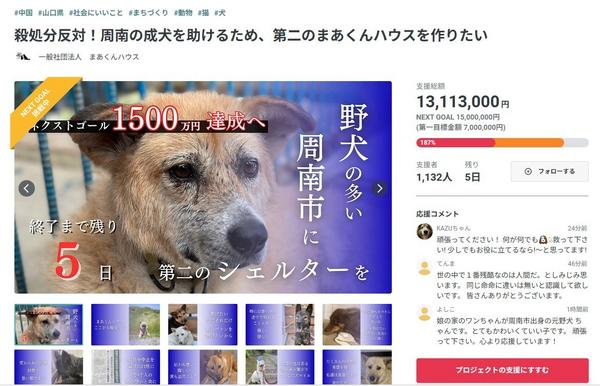 【周南市】「殺処分から周南市の保護犬を救いたい」 施設開設へ「まあくんの家」がCF