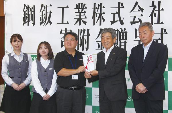 山口県下松市西豊井の東洋鋼鈑㈱の100%出資会社、鋼鈑工業㈱(柳井力代表取締役社長)は4日「スポーツ振興や子どもたちのために役立ててほしい」と、同市に10万円...