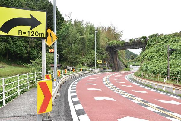 山口県周南市の熊毛地区の大河内で昨年から進められてきた国道2号の緊急事故対策で、JR岩徳線と交差する付近のカラー舗装が5月下旬に施工を終えた。すでに減速路面標...