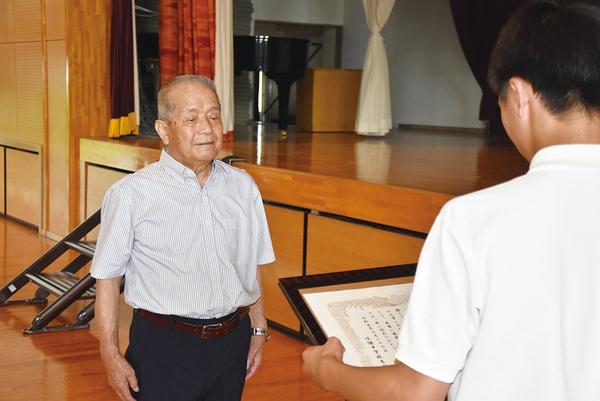 【周南市】熊本、吉村さんに岐陽中生が感謝状 登校時に交通安全指導