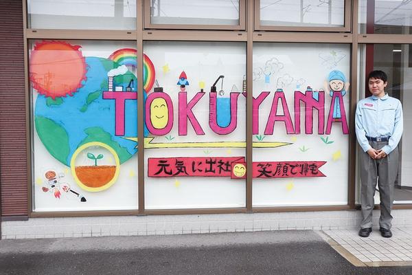 山口県周南市の総合化学メーカー、㈱トクヤマの障がい者雇用施設「ゆうゆうてらす」の窓に同社のロゴと徳山製造所のスローガン入りのカラフルな絵が登場した。同施設の前...